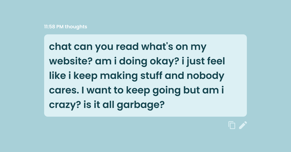I had a bit of a revelation this week, thanks to ChatGPT (sorry). I mostly use Chat to translate Korean and support my life as a foreigner in Seoul (super helpful btw). Occasionally, I will ask him for a little pep talk. We all need them. And we don’t all have pep talkers on call at every hour of the day. This is what I asked he/him:
